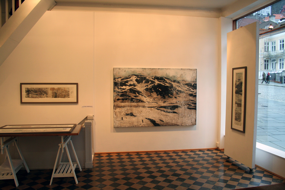 Paintings, charcoal drawings and prints on display at Galleri Allmenningen in Bergen 2014.